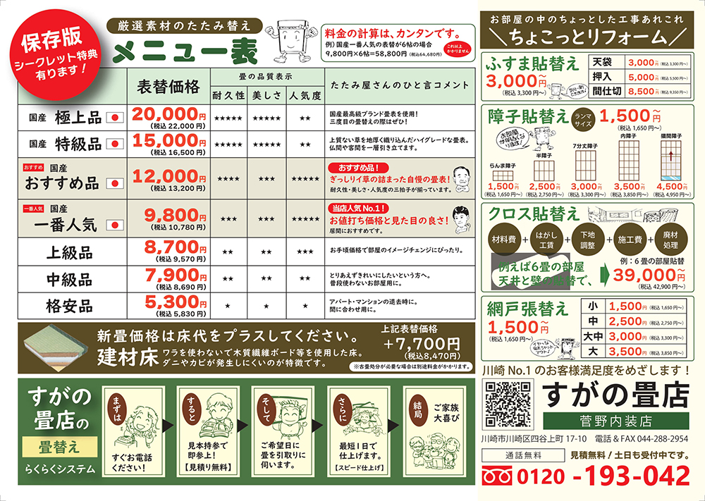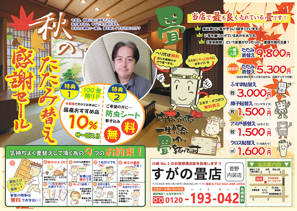 畳・内装のことなら、昭和36年創業の川崎市川崎区「すがの畳店」へお問い合わせください。